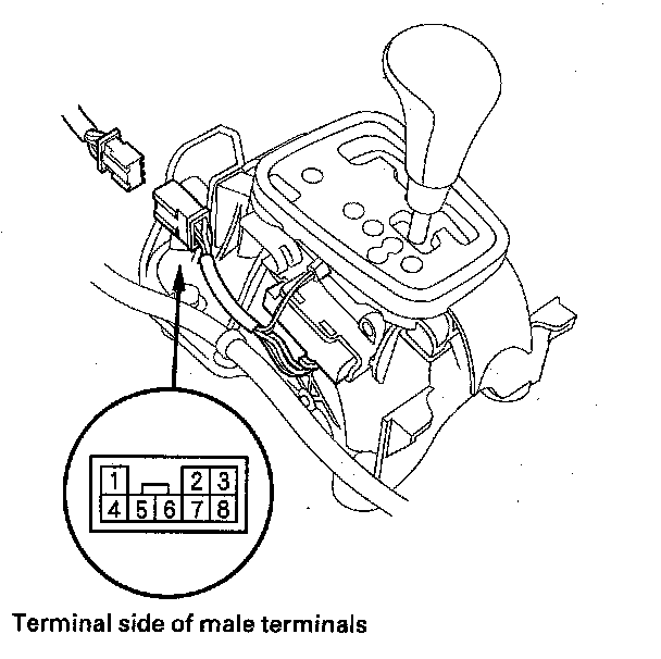 6. There should be continuity when the shift lever is pulled toward the downshift position (-), and no continuity with the shift lever released to the neutral position.