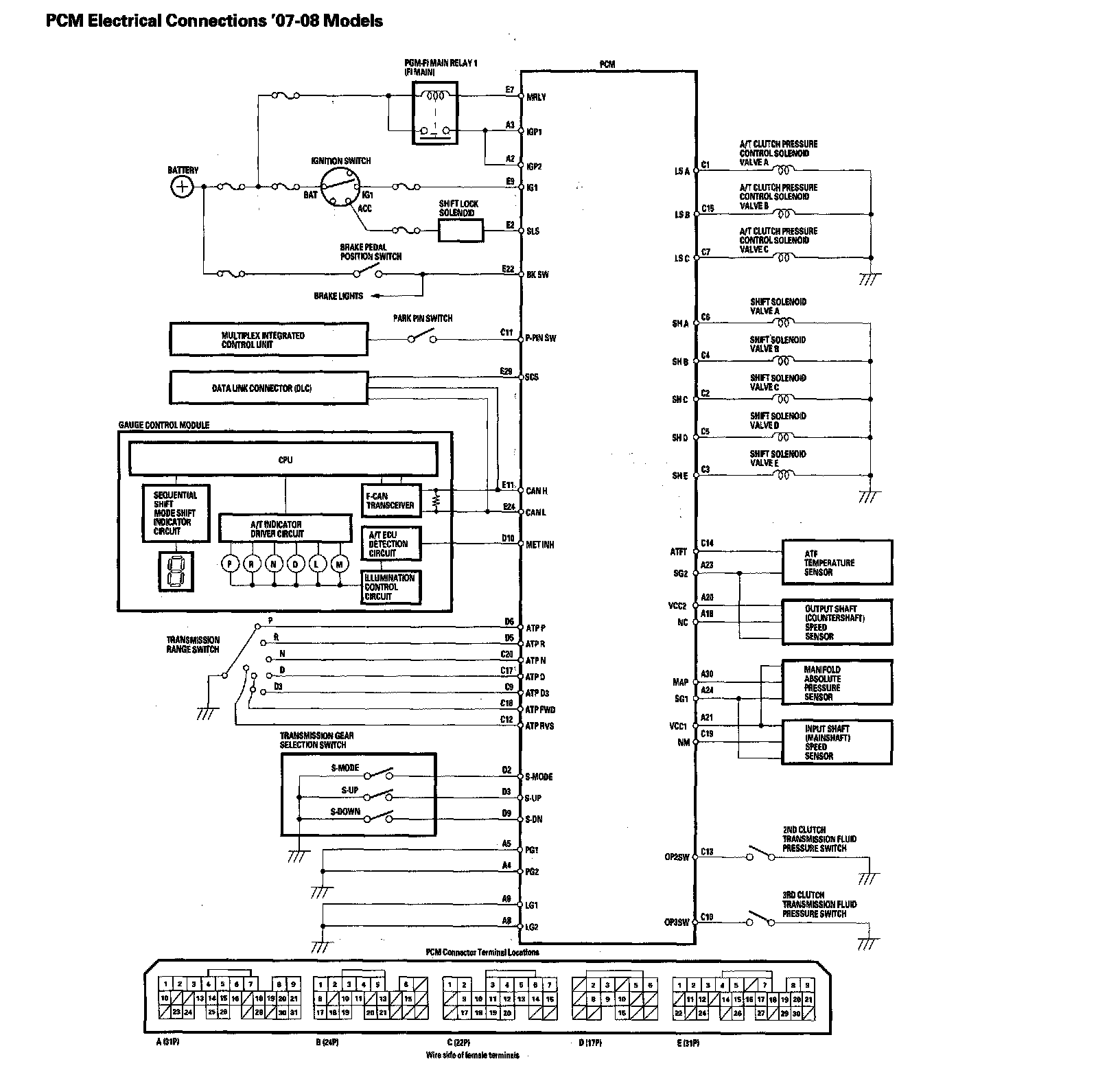 PCM Electrical Connections '07-08 Models: