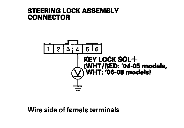 NO - Check for an open in WHT/RED ('04-05 models) or WHT ('06-08 models) wire between the multiplex integrated control unit and the steering lock assembly connector. If the wire is OK, substitute a known-good multiplex integrated control unit and recheck.>