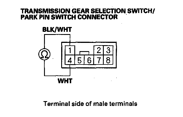 9. Disconnect the transmission gear selection switch/park pin switch connector.