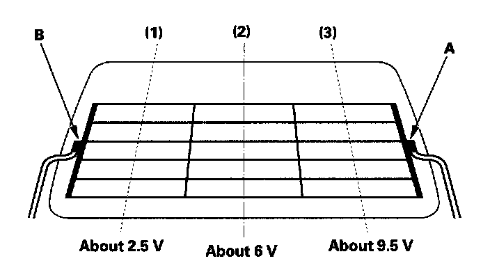 1. Measure the voltage between the positive terminal (A) and body ground with the ignition switch and defogger switch ON. There should be battery voltage.