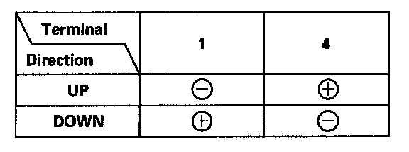 3. Test the motor in each direction by connecting battery power and ground according to the table. When the motor stops running, disconnect one lead immediately.