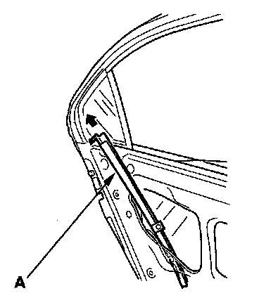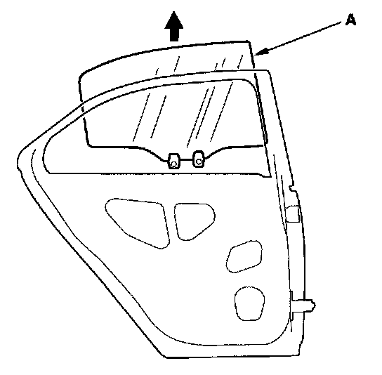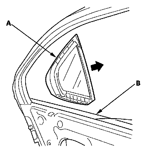 6. Remove the quarter glass (A). Take care not to damage the outer weatherstrip (B).