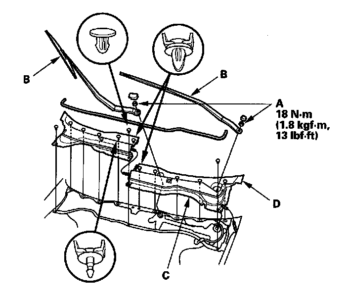 Wiper Motor Replacement1. Open the hood. Remove the caps, nuts (A), and the windshield wiper arms (B).