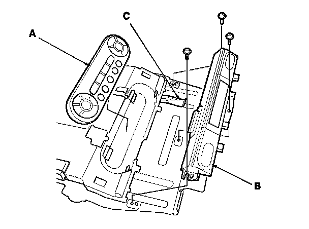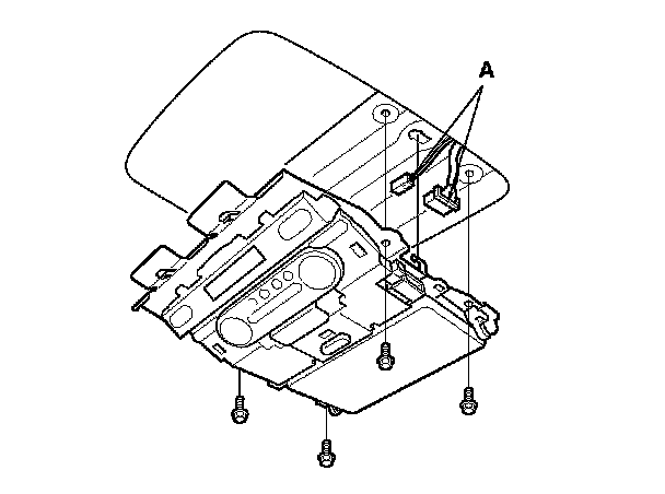 2. Remove the mounting bolts, disconnect the connectors (A) from the rear controller and screen.