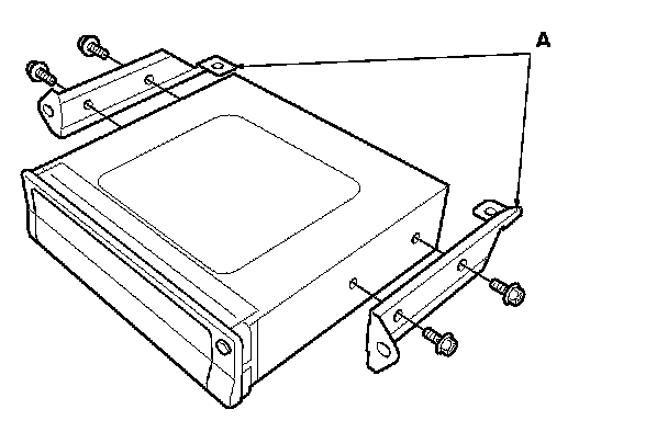 5. Remove the two mounting nuts (A) from the navigation unit (B).