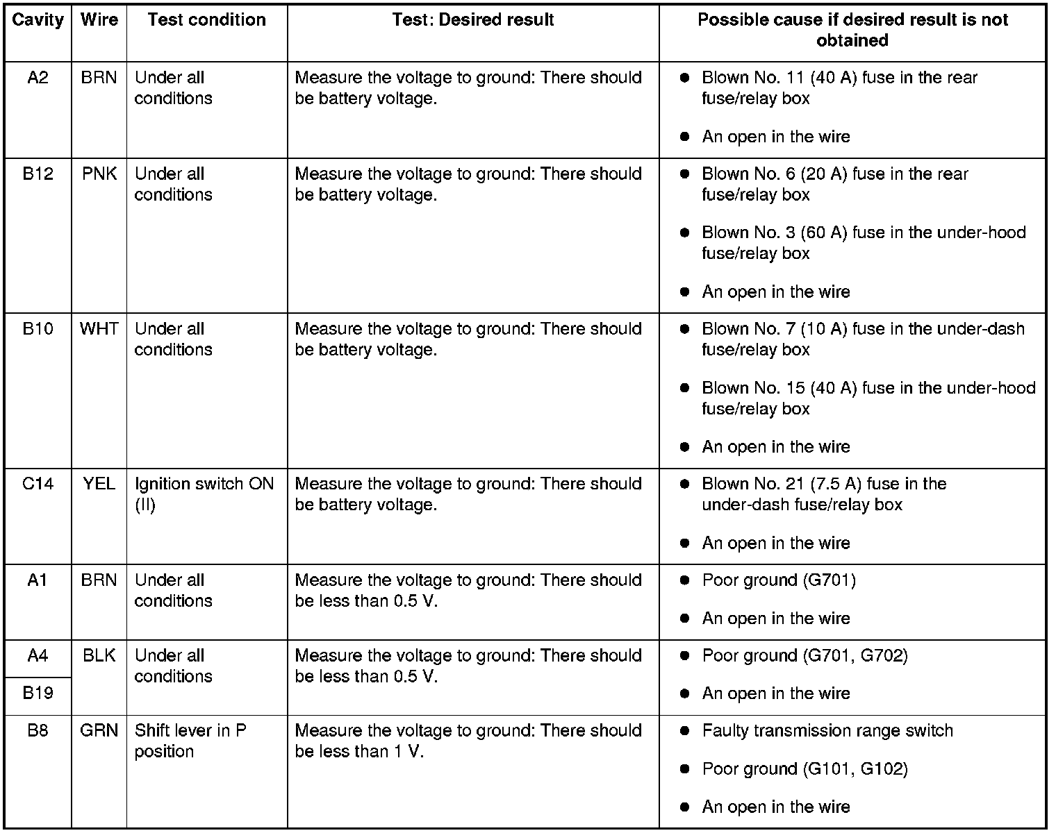 NOTE: Before testing the power tailgate control unit, troubleshoot the multiplex integrated control unit first, using B-CAN System Diagnosis Test Mode A. Troubleshooting - B-CAN System Diagnosis Test Mode A
