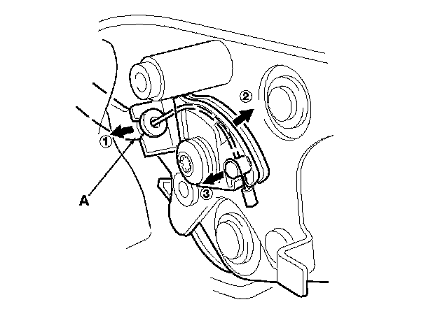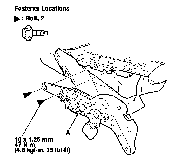 8. Remove the bolts, then remove the latch (A).