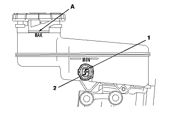 - Fill the reservoir with brake fluid to the MAX (upper) level (A). With the float up, there should be no continuity.