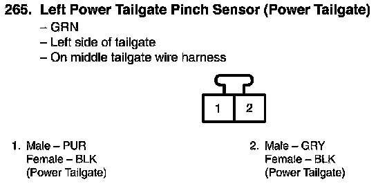 View 265 Left Power Tailgate Pinch Sensor Connector View (Power Tailgate)