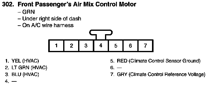 View 302 Front Passenger's Air Mix Control Motor Connector View