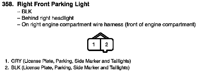 View 358 Right Front Parking Light Connector View
