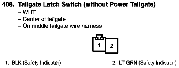 View 408 Tailgate Latch Switch Connector View (Except Power Tailgate)