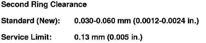 7. After installing a new set of rings, measure the ring-to-groove clearance: