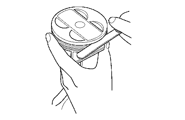 3. Clean all the ring grooves thoroughly with a squared-off broken ring, or a ring groove cleaner with a blade that fits the piston grooves. File down the blade, if necessary. The top ring and second ring grooves are 1.2 mm (0.05 in.) wide, and the oil ring groove is 2.8 mm (0.11 in.) wide. Do not use a wire brush to clean the ring grooves, or cut the ring grooves deeper with the cleaning tool.