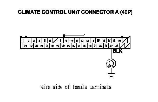 5. Check for continuity between climate control unit connector A (40P) terminal No. 37 and body ground.