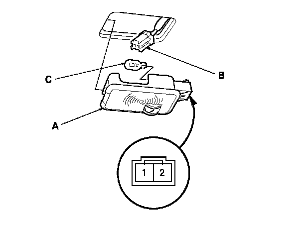 There should be continuity. If there is no continuity, check the bulb (C). If the bulb is OK, replace the tailgate light.