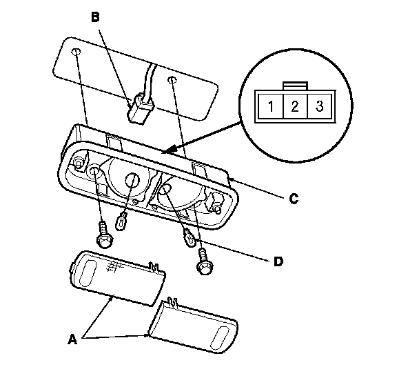 6. If the continuity is not as specified, check the bulb(s) (D). If the bulbs are OK, replace the light.