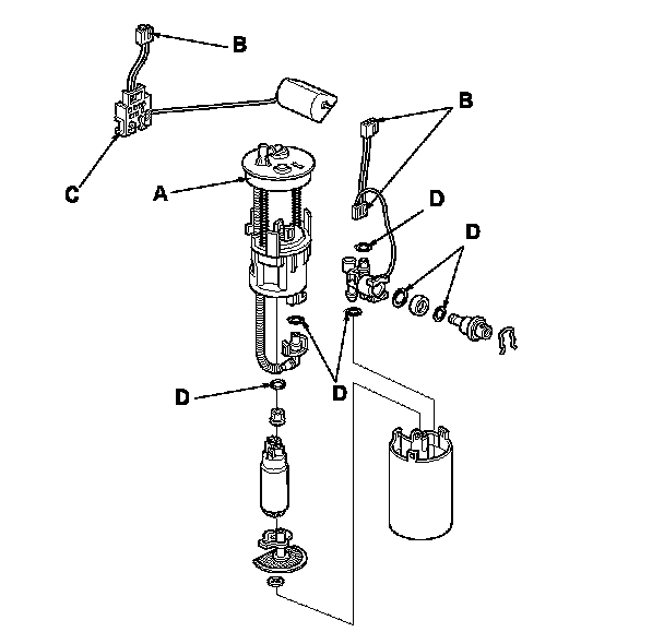 4. Install the parts in the reverse order of removal with new O-rings (D). When installing the fuel tank unit, align the marks on the unit and the fuel tank. Fuel Tank Unit Removal and Installation
