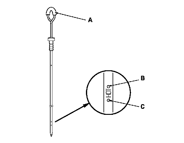 10. Make sure the fluid level is between the upper mark (B) and lower mark (C) on the dipstick.