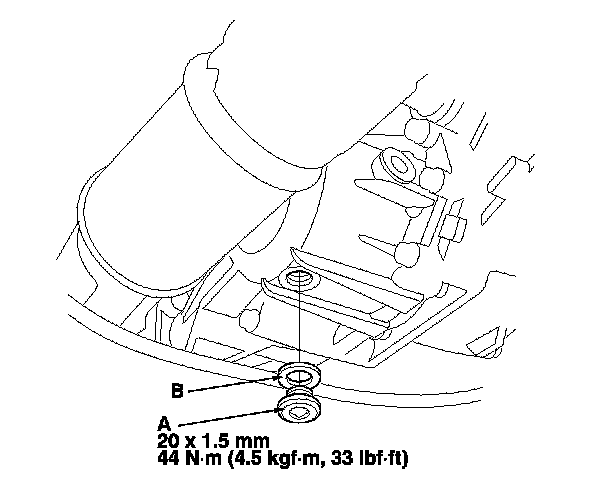 7. Remove the filler plug (A) and sealing washer (B).