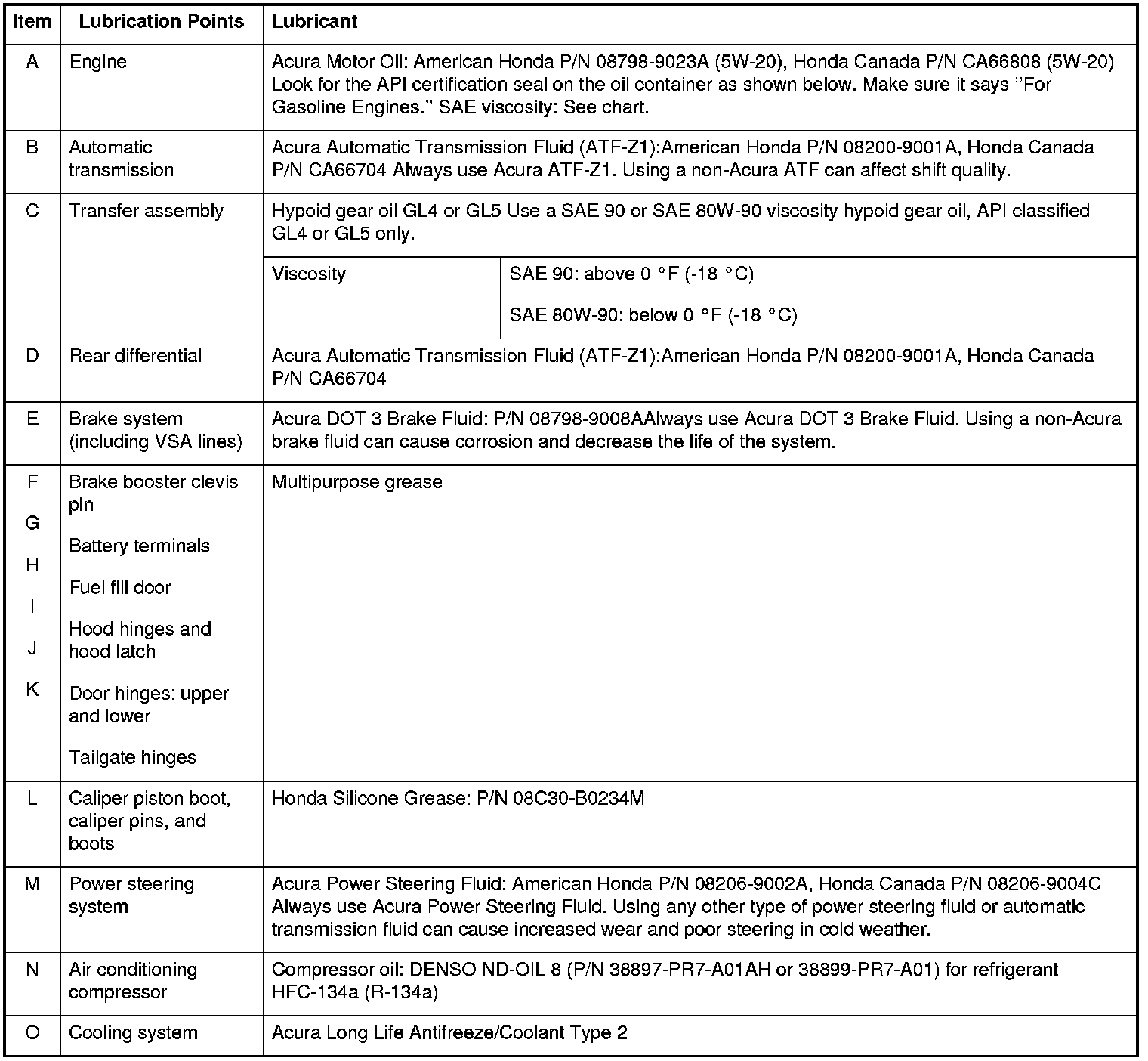 - Lubricate the following areas using the recommended lubricants and fluids.