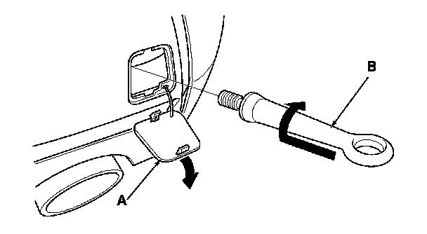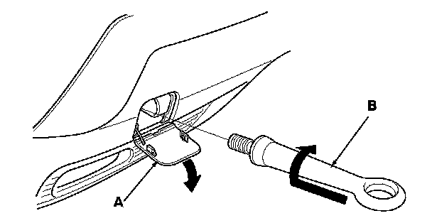 3. Screw in the towing hook (B), and tighten it securely by hand.