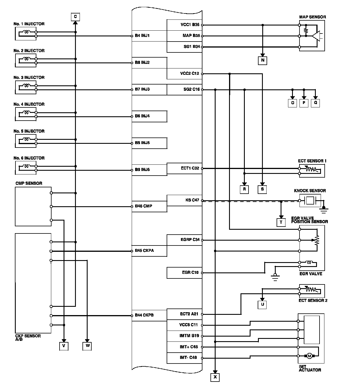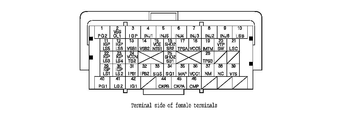 PCM Inputs and Outputs at Connector B (triangle) (49P)