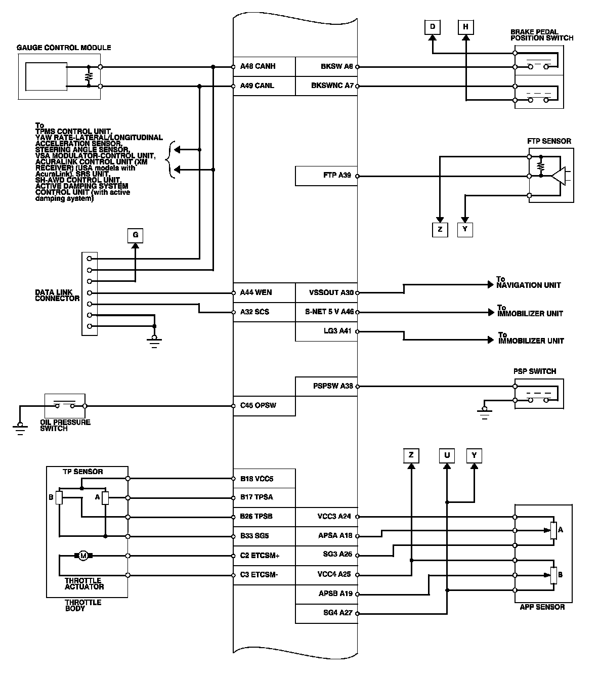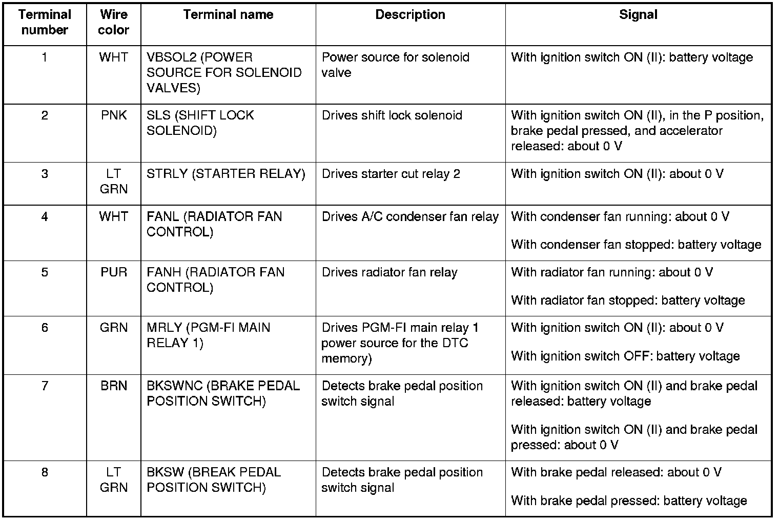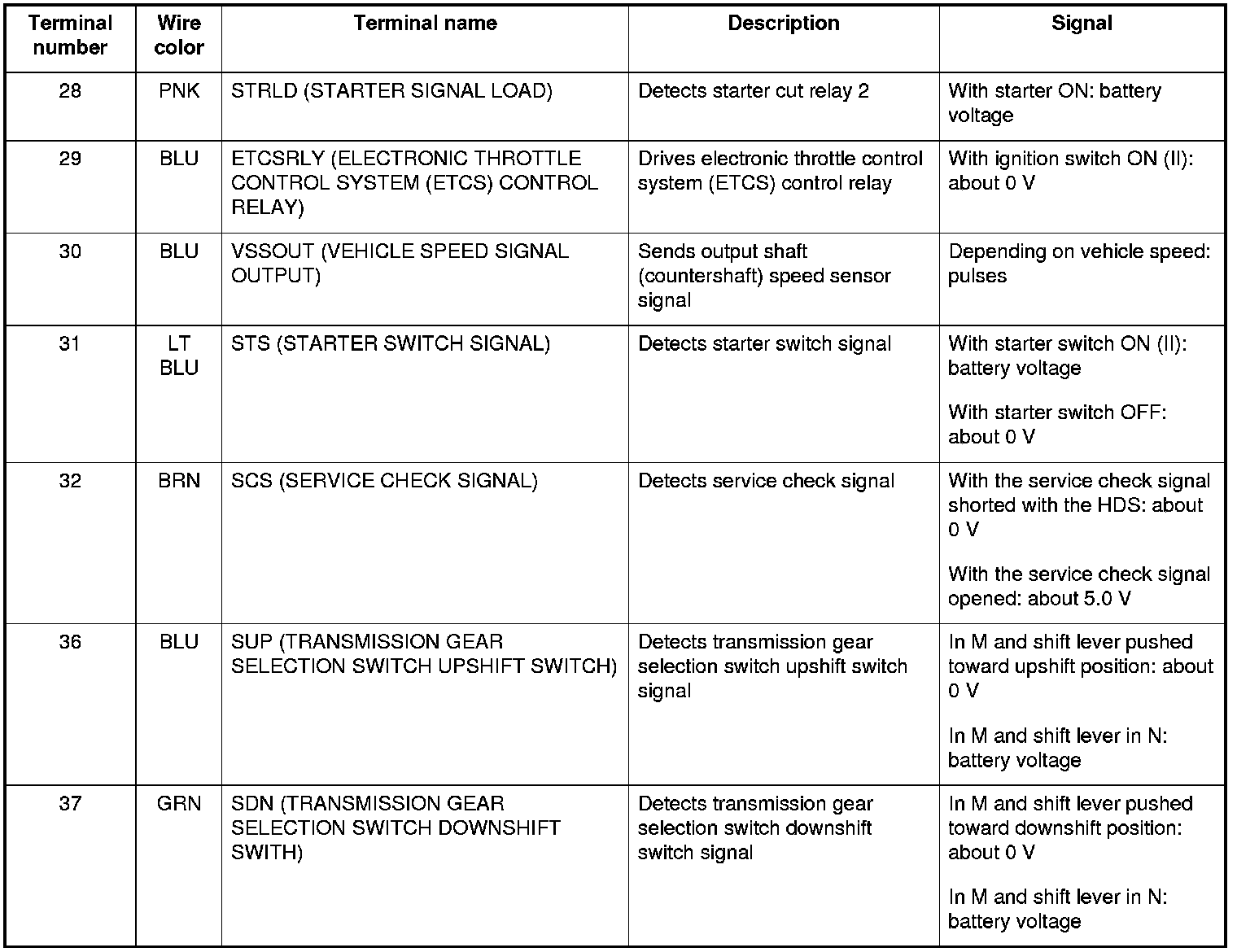 After the ignition switch is turned to LOCK (0), the PCM stays on (up to 40 minutes). If the PCM connector is disconnected during this time, the PCM may be damaged. To cancel this mode, disconnect the negative cable from the battery or jump the SCS line with the HDS after the ignition switch is turned to LOCK (0).
