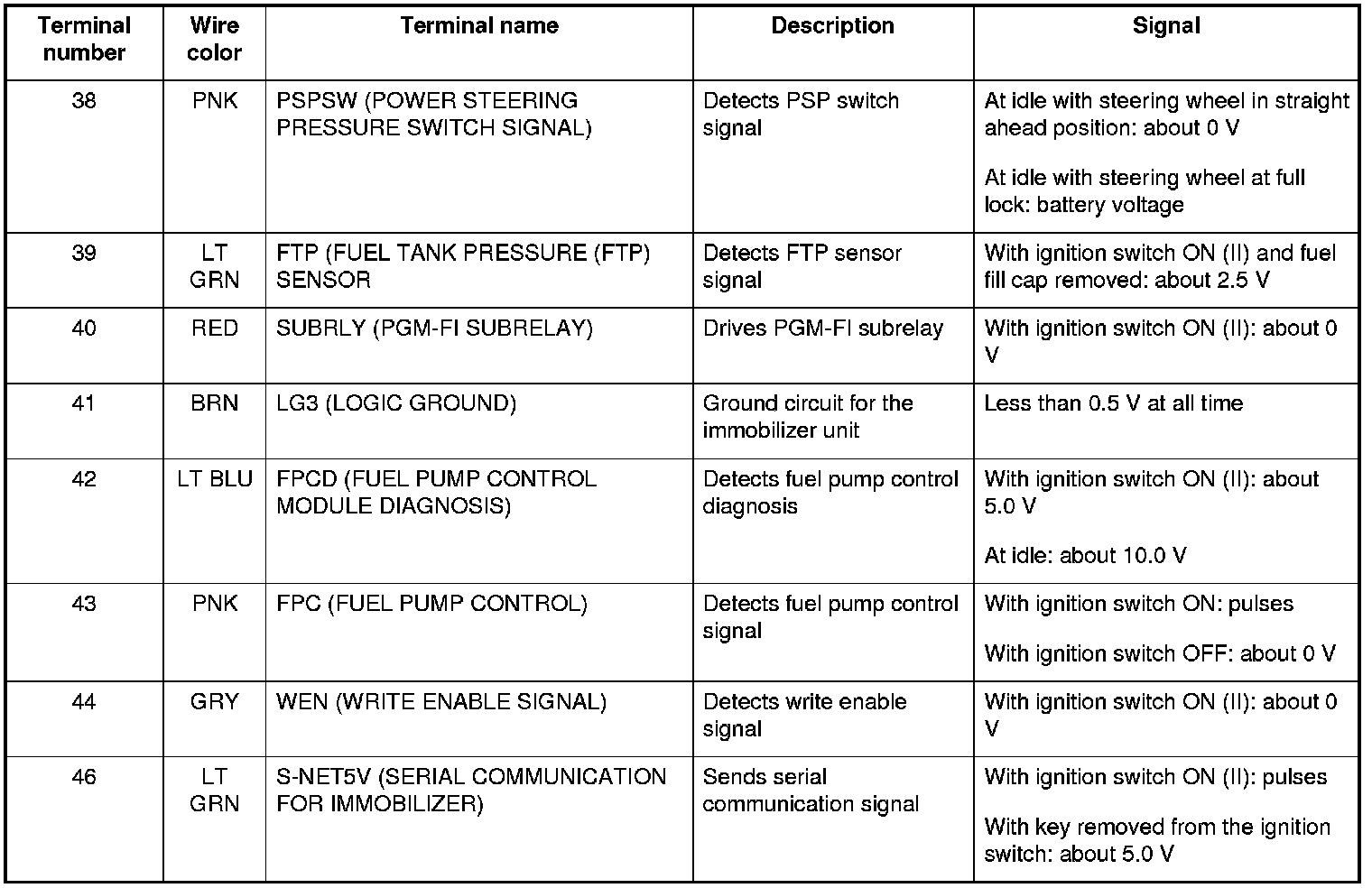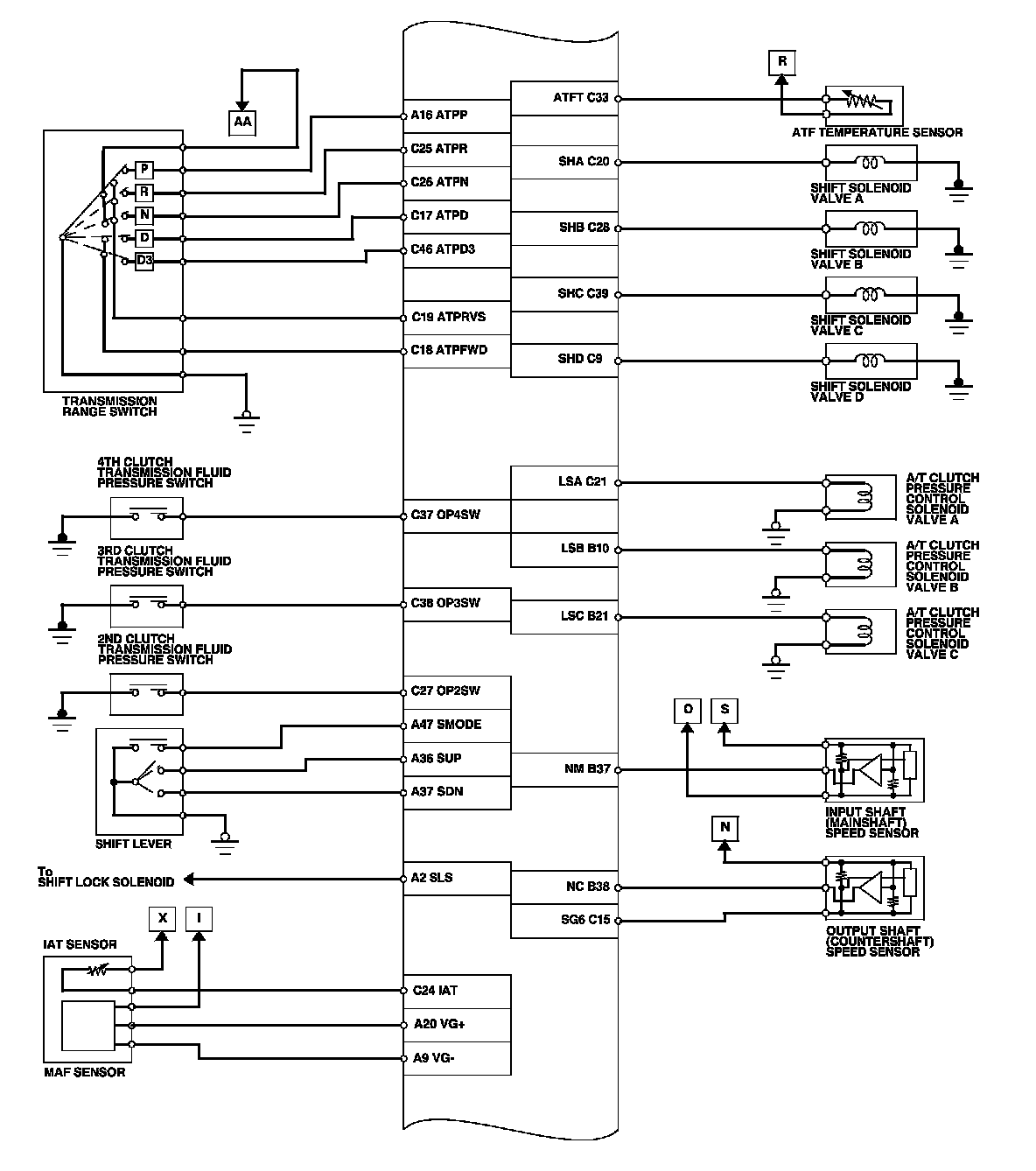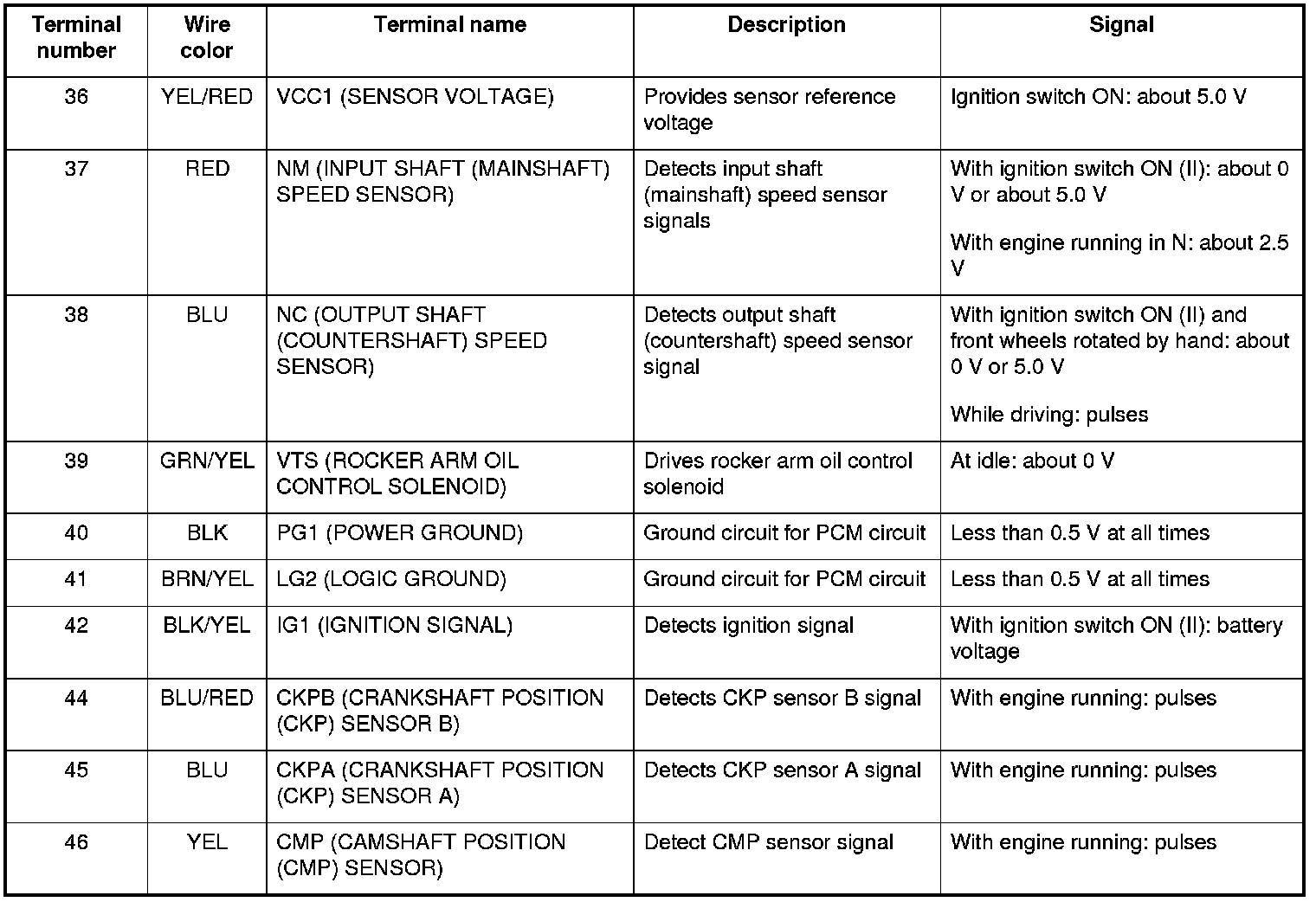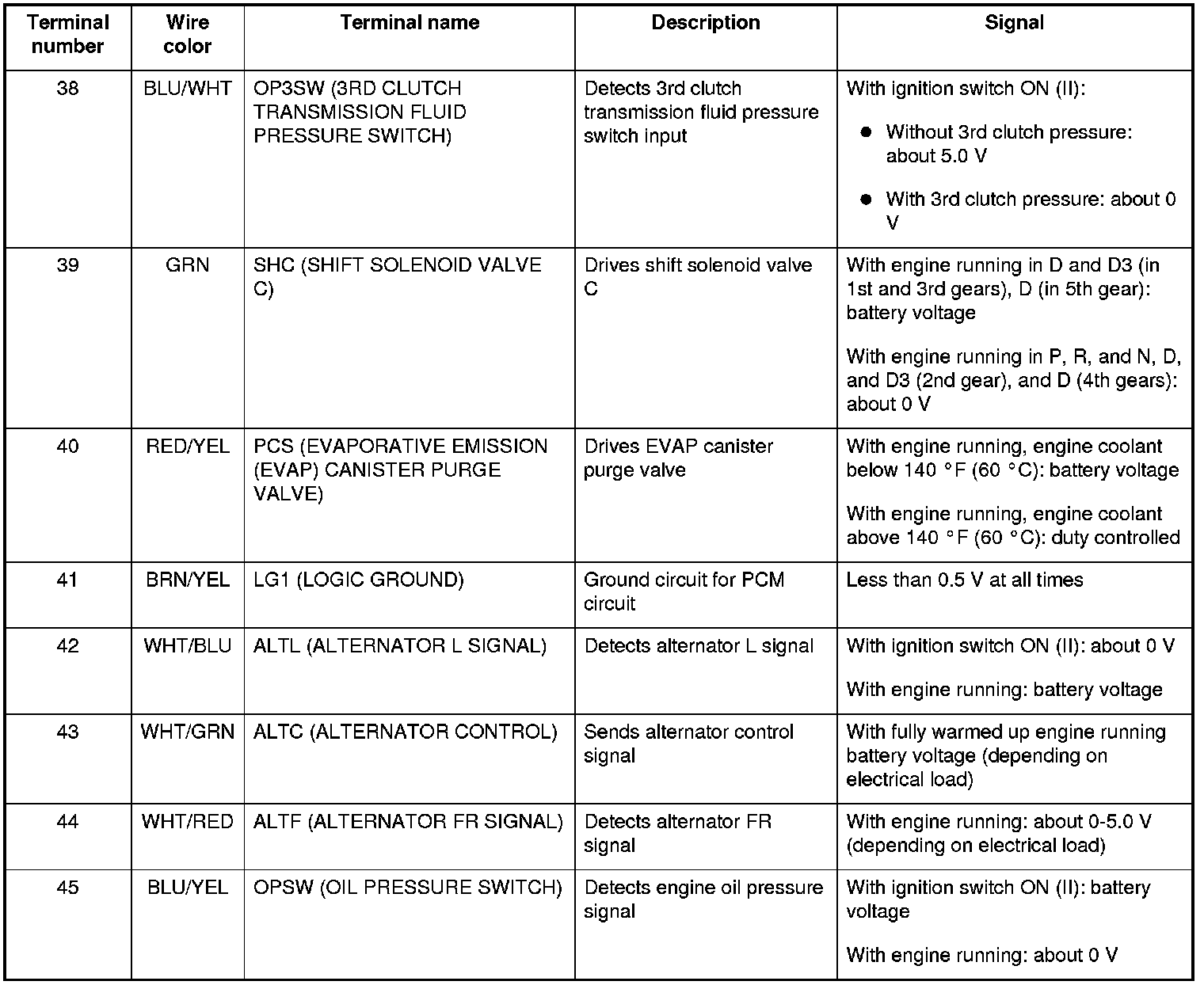 PCM Inputs and Outputs at Connector C (circle) (44P)