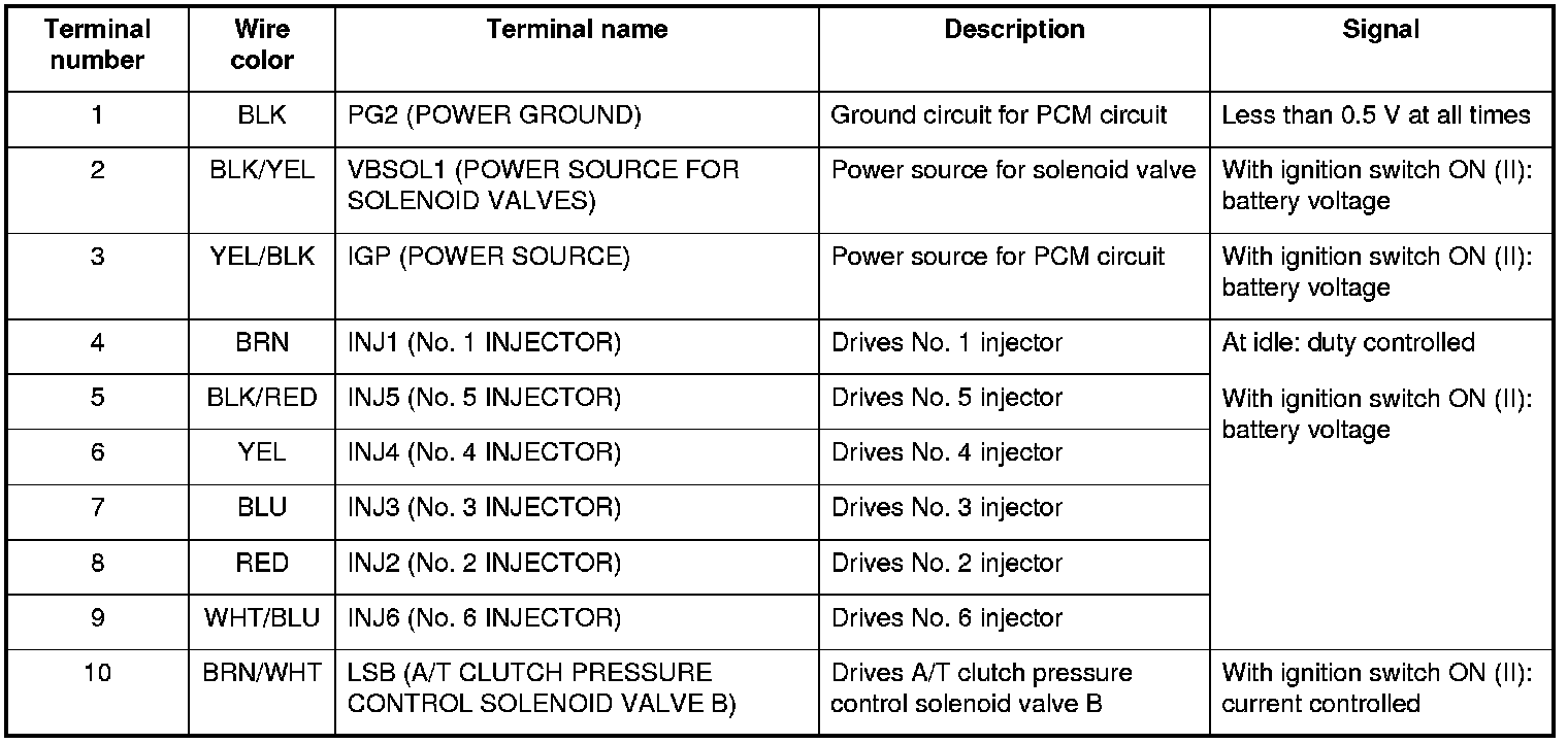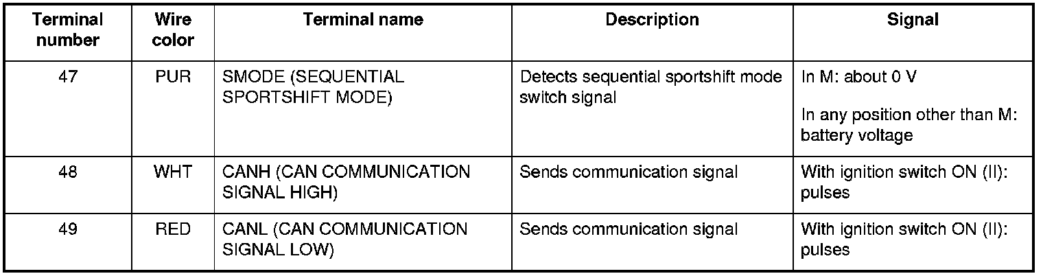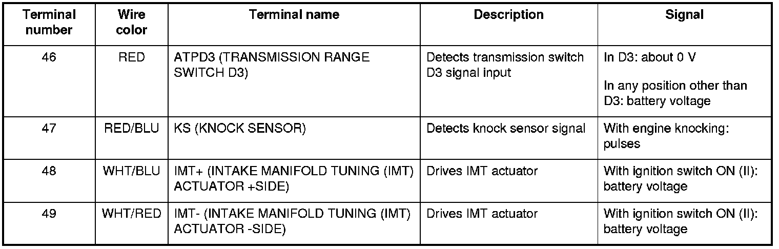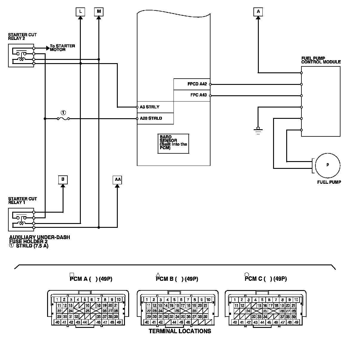 PCM Inputs and Outputs at Connector A (square) (49P)