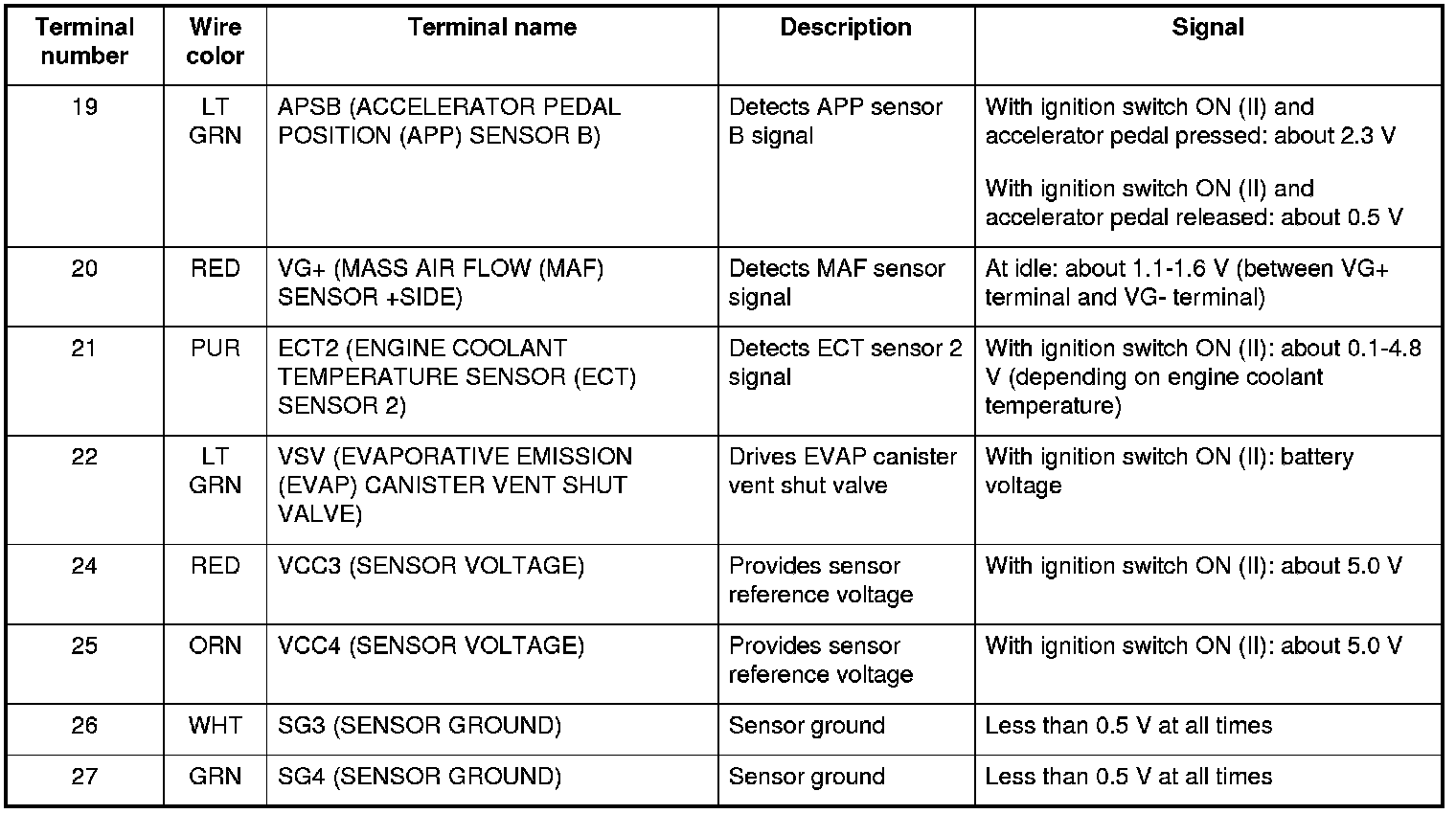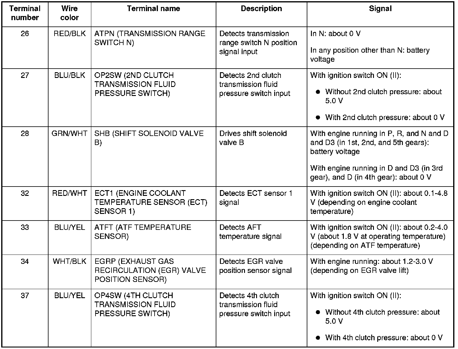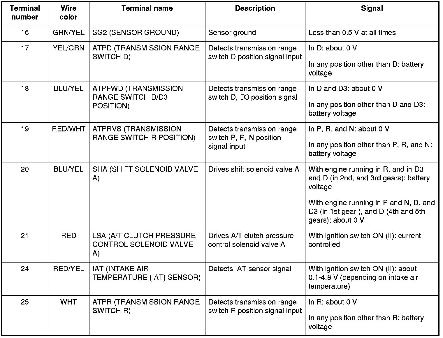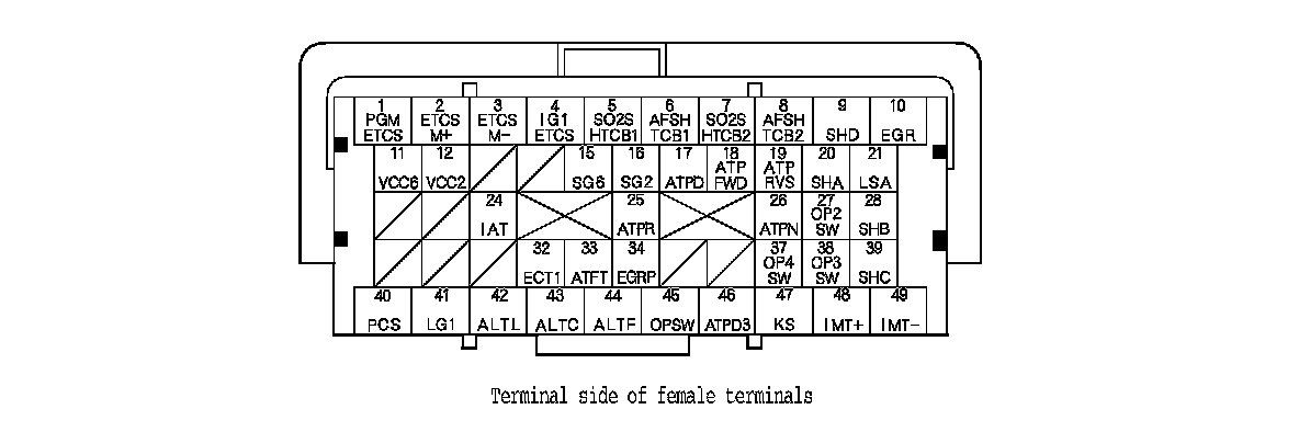 PCM Inputs and Outputs at Connector A (square) (49P)