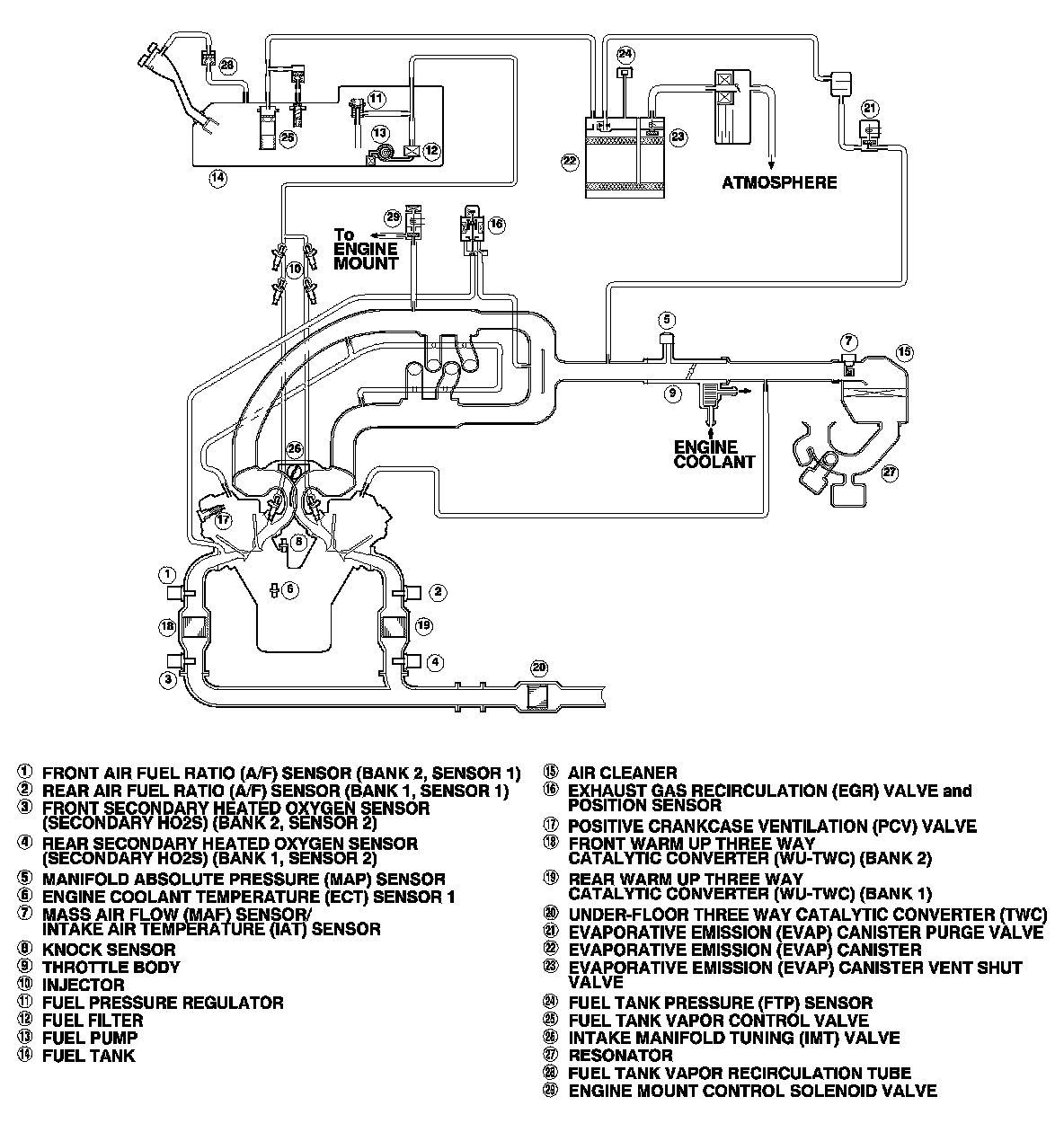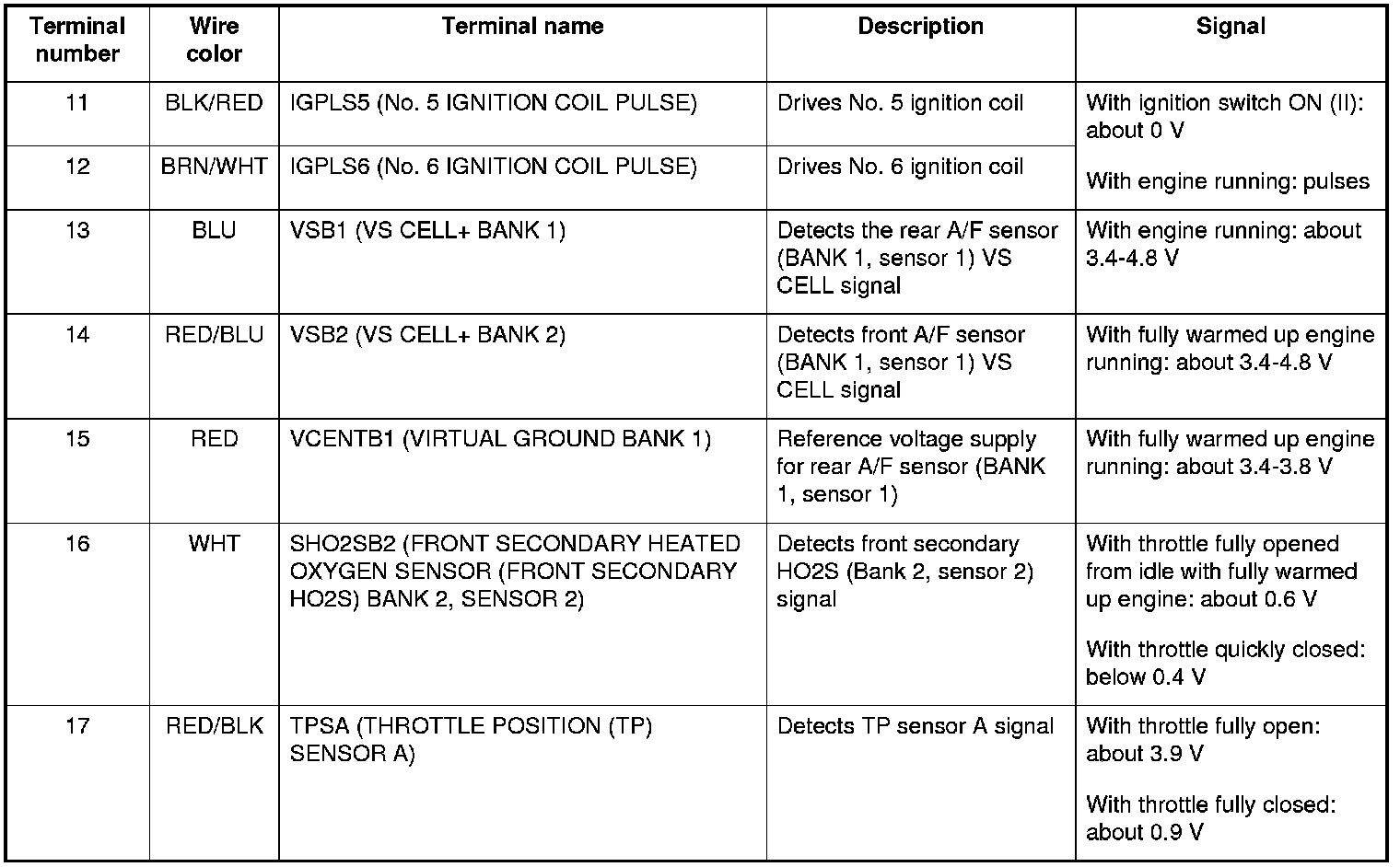 The A/F sensor operates over a wide air/fuel range. The A/F sensor is installed upstream of the warm up the three way catalytic converter (WU-TWC), and sends signals to the PCM which varies the duration of fuel injection accordingly.