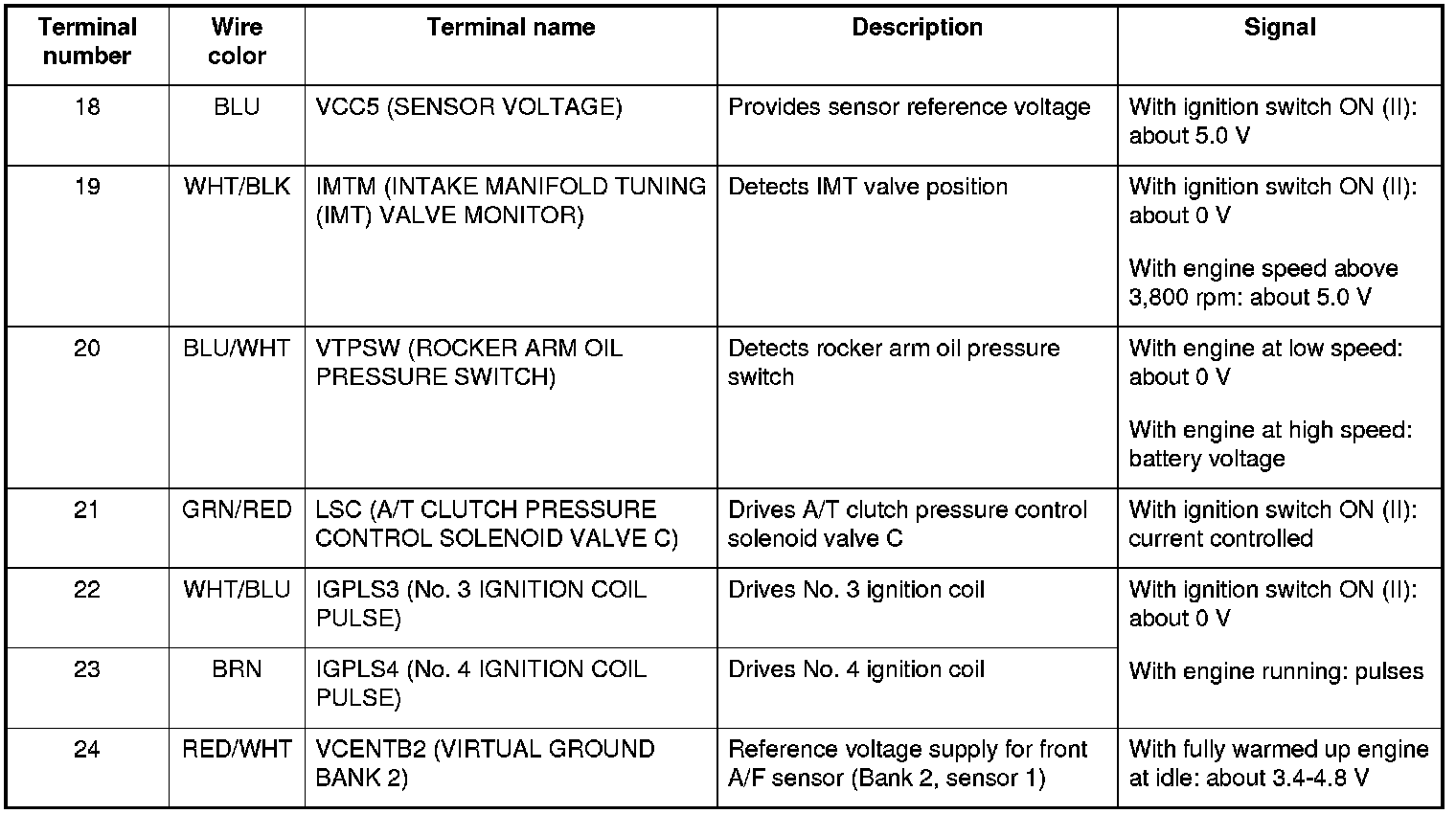 When an abnormality occurs in the signal from a sensor or from another control unit, the PCM ignores that signal and substitutes a pre-programmed value that allows the engine to continue running. This causes a DTC to be stored and the MIL to come on.