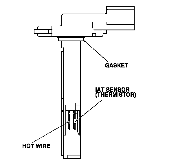 The mass air flow (MAF) sensor/intake air temperature (IAT) sensor contains a hot wire and a thermistor. It is located in the intake air passage. The resistance of the hot wire and thermistor change due to intake air temperature and air flow. The control circuit in the MAF sensor controls the current to keep the hot wire at a set temperature. The current is converted to voltage in the control circuit, then output to the PCM.