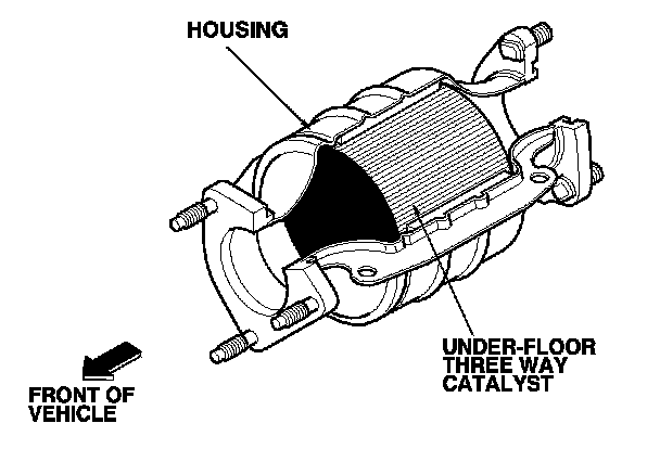 The WU-TWC/TWC converts hydrocarbons (HC), carbon monoxide (CO), and oxides of nitrogen (NOx) in the exhaust gas to carbon dioxide (CO2), nitrogen (N2), and water vapor.