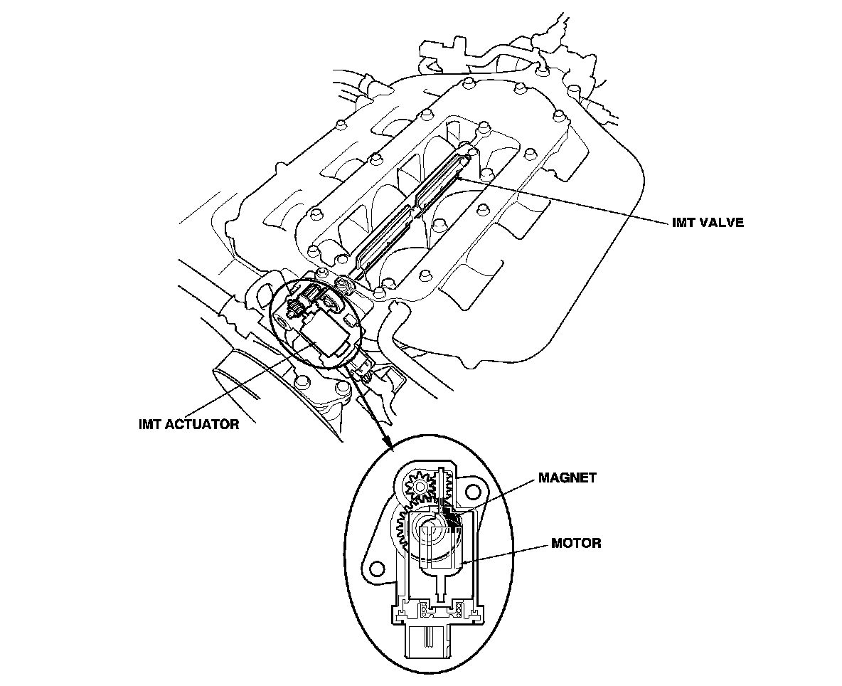 The intake manifold tuning (IMT) valve actuator contains a sensor that detects the IMT valve position and sends it to the PCM.