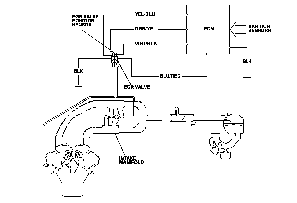 The EGR system reduces oxides of nitrogen (NOx) emissions by recirculating exhaust gas through the EGR valve and the intake manifold into the combustion chambers. The PCM memory contains the ideal EGR valve position for various operating conditions.