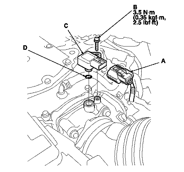5. Install the parts in the reverse order of removal with a new O-ring (D).