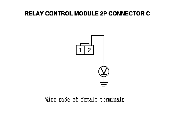 3. Measure the voltage between the relay control module connector C terminal No. 2 and body ground.