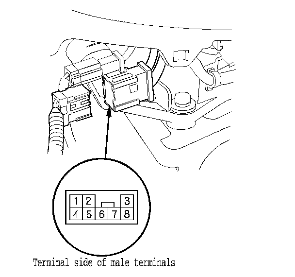 4. Shift out of P, and check for continuity between connector terminals No. 1 and No. 4.