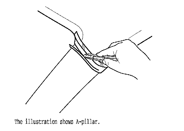 5. Remove the tape, and install the pillar trim.