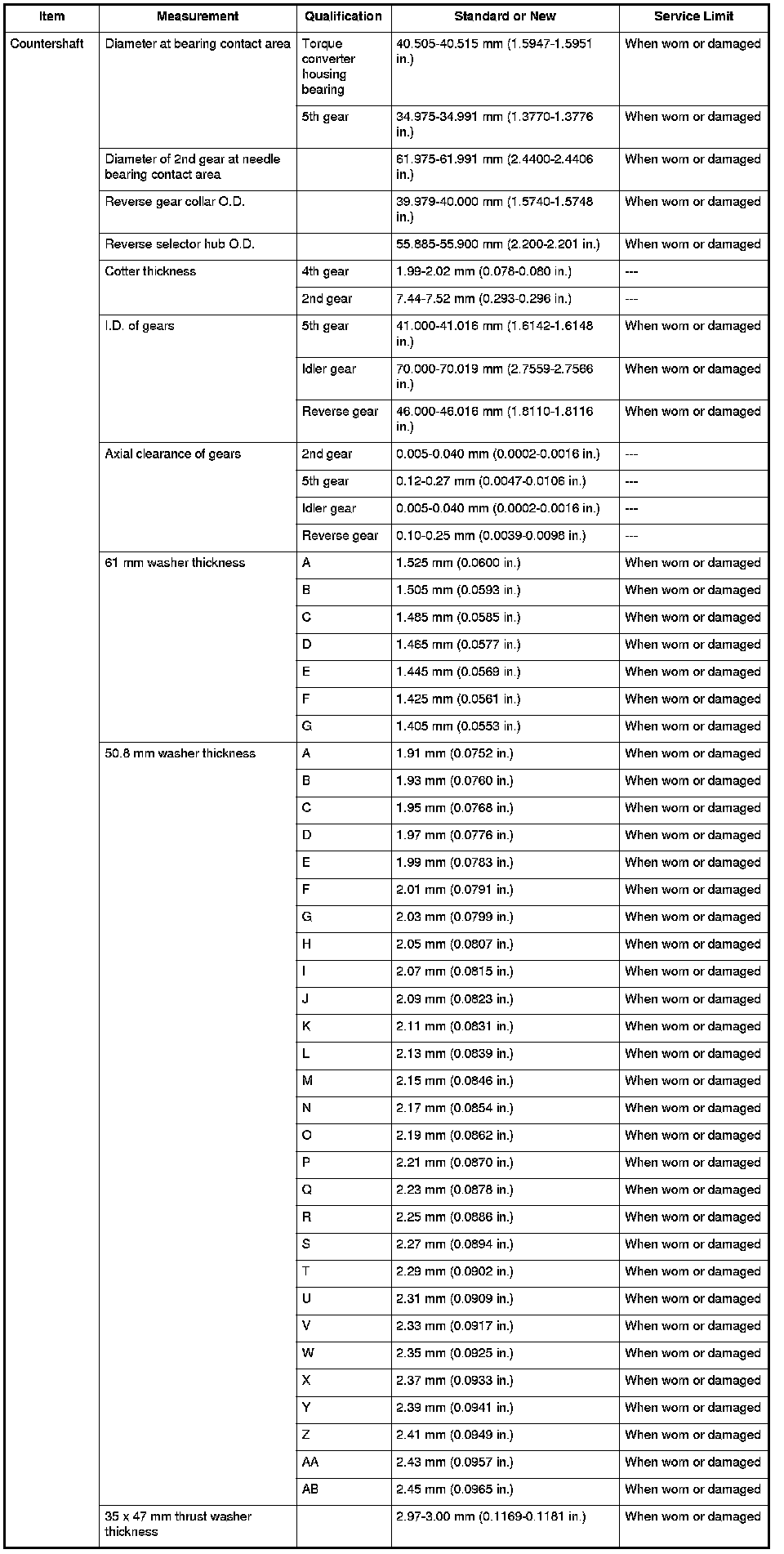 Countershaft Specifications