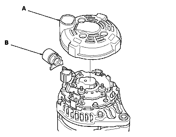 5. Remove the end cover (A) and the insulator (B).