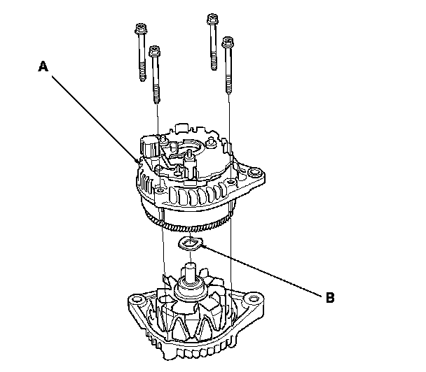 16. Assemble the alternator in the reverse order of disassembly, and note these items:
