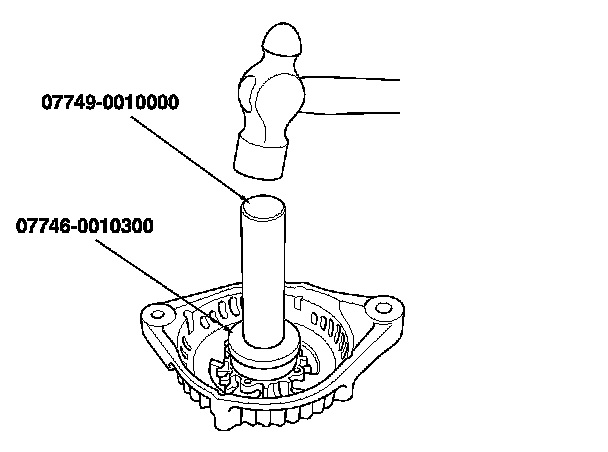 12. Install a new front bearing in the drive end housing with a hammer, the driver handle, and bearing driver attachment (42 x 47 mm).