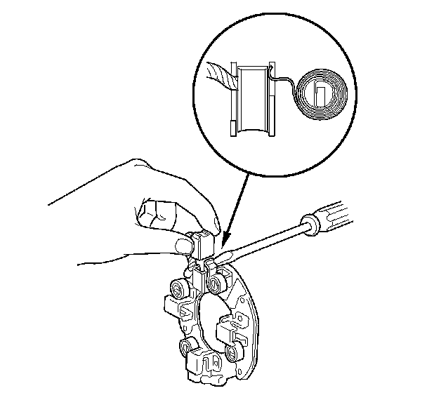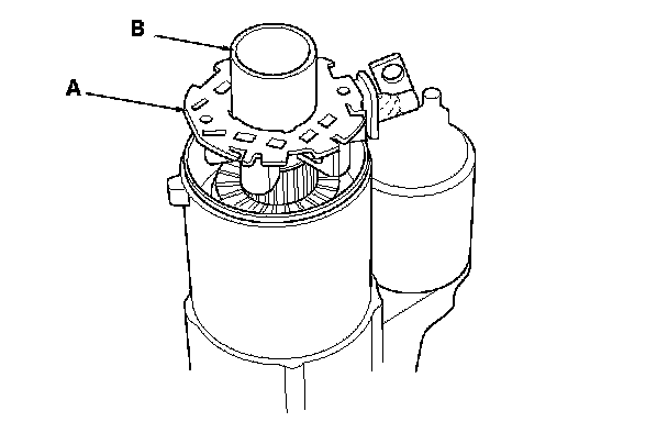 15. Check for continuity between the (+) brush holders (A) and (-) brush holders (B). If there is continuity, replace the brush holder assembly.