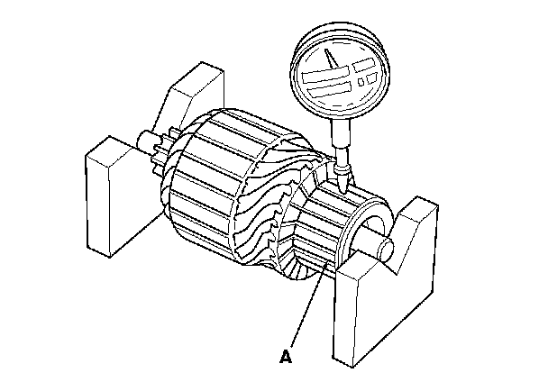8. Check the commutator diameter. If the diameter is below the service limit, replace the armature.