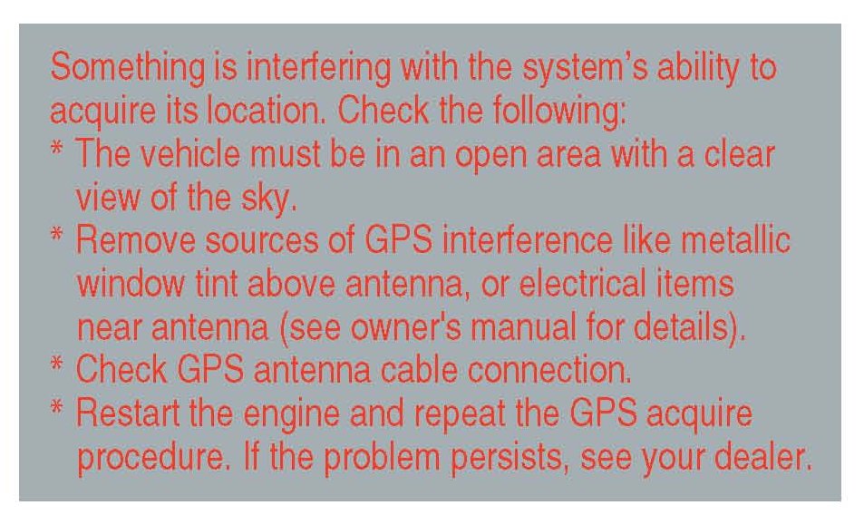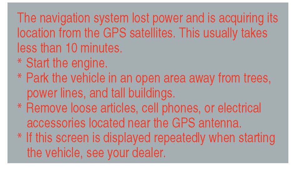 6. The following instructions appear on the screen to indicate the system is initializing (determining its location from the GPS satellites). Follow the on- screen instructions.