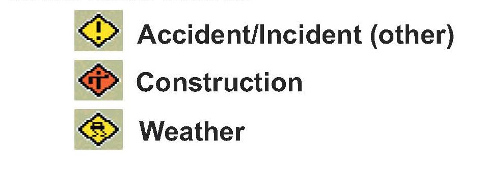 Incident icons indicate accidents, construction, or weather-related incidents: